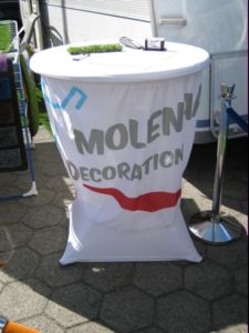 Altijd handig bij een feestje; een statafel waar uw gasten hun drankje op kunnen plaatsen. Maar ook voor in uw stand op een beurs of braderie om uw reclame materiaal Statafel_beursen visitekaartjes op te tonen.