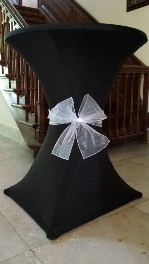 Stoel- / statafelstrikkenStatafelrokken_wit_bruiloft_huwelijk_met_strik_tule statafel_statafelrok_stretch_zwart_organza_strik_wit