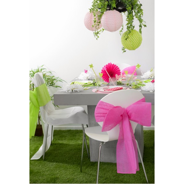 Afm.:Stoelstrik_organza_roze_limegroen_18,5x270cm.stoelstrik_satijn_kleuren_15x275cm