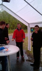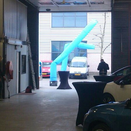 Verhuur en verkoop statafelsPartytent_3x3_easy-up_blauw_kunstgras_afzetpalen_statafel_braderie_Ameide